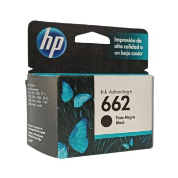 Cartucho de tinta original HP 662 (CZ103AL) en color negro. Es la opción más fiable para una amplia gama de impresoras HP Deskjet Ink Advantage, garantizando impresiones nítidas, consistentes y protegiendo tu equipo.