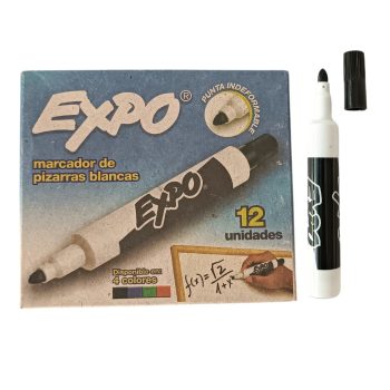 Marcador para Pizarra Acrílica Negro Expo: Los marcadores para pizarra acrílica son esenciales para profesores, presentadores y cualquier persona que necesite escribir o dibujar en pizarras blancas de manera clara y legible. El marcador negro Expo es una excelente opción por su calidad, durabilidad y color intenso. Características Color: Negro