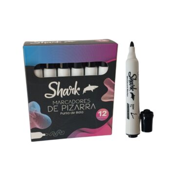 Marcador para pizarra acrílica negro Shark. Con punta redonda para trazos suaves y tinta de secado rápido. ¡Ideal para presentaciones, reuniones y clases, se borra fácilmente sin dejar manchas!