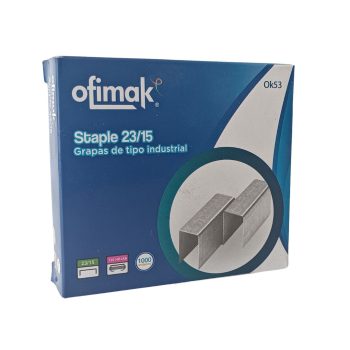 Grapas industriales 23/15: Estas grapas son ideales para uso en oficinas, imprentas, centros de copiado y cualquier lugar donde se necesite grapar grandes cantidades de papel de forma segura y duradera. Su tamaño y diseño las hacen perfectas para engrapadoras de alta resistencia. Características Medida: 23/15. Esta medida indica que