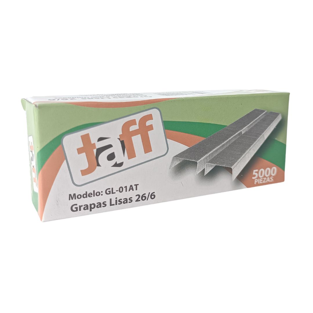 - Medida: 26/6. Esta medida indica que la grapa tiene 26 mm de ancho y 6 mm de alto. Esta es la medida estándar de grapa, compatible con la mayoría de las engrapadoras.