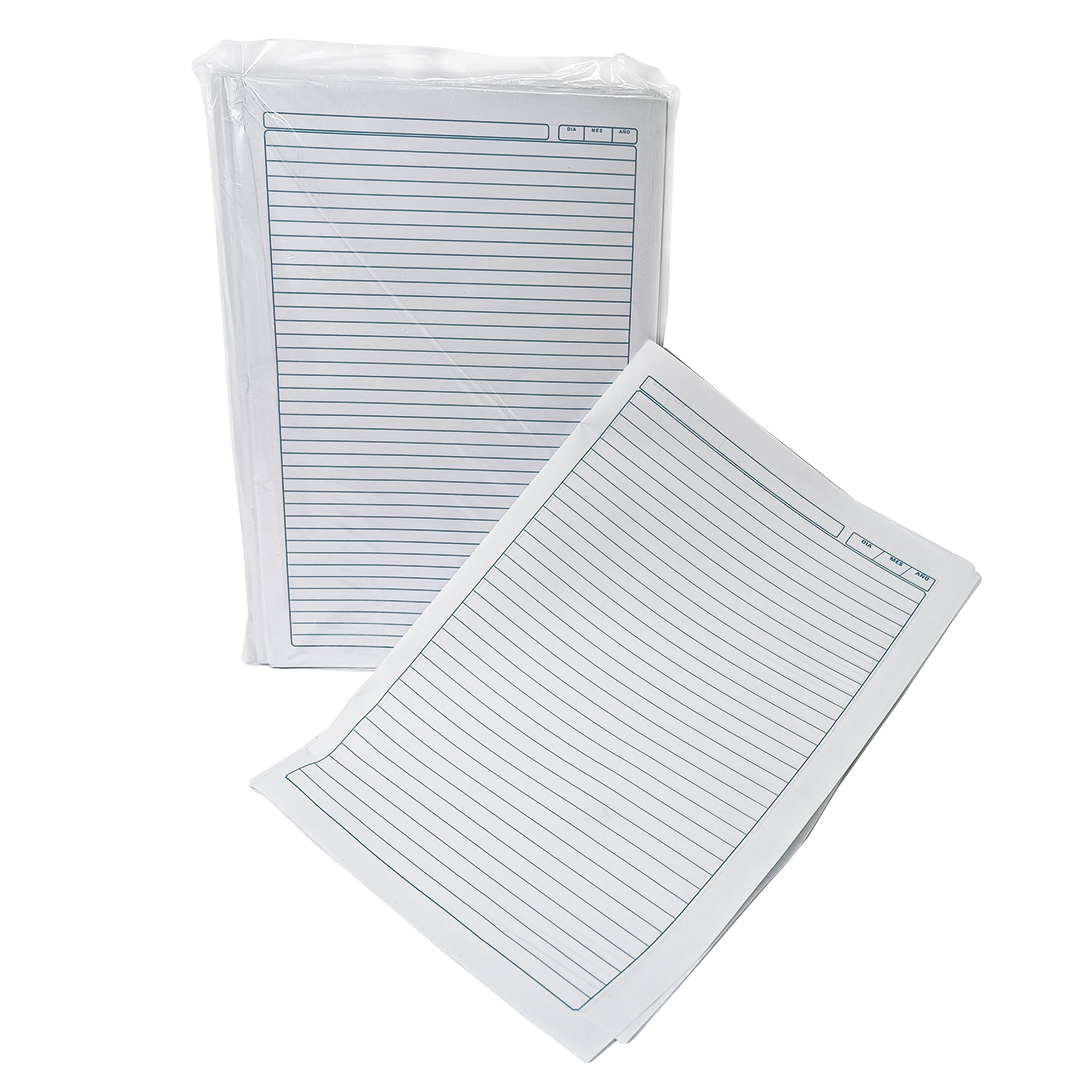 Paquete de hojas rayadas, específicamente diseñadas para la presentación de exámenes,