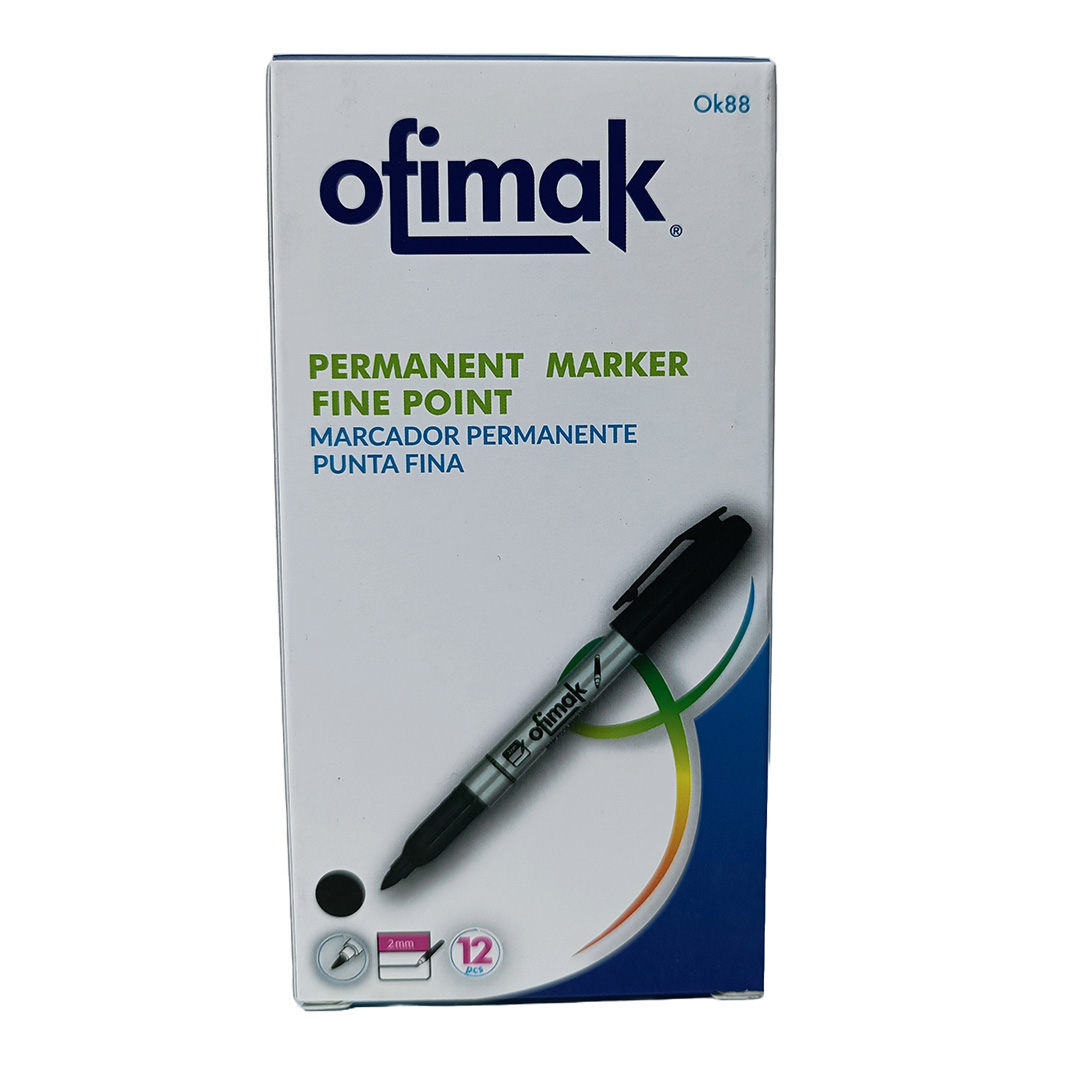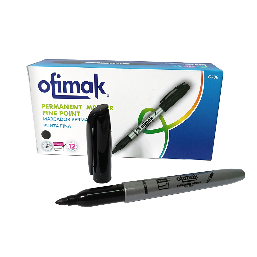 Los marcadores permanentes son herramientas esenciales para marcar y rotular una gran variedad de superficies de manera duradera. El marcador permanente negro Ofimak con punta fina es una excelente opción si buscas precisión y permanencia en tus trabajos.